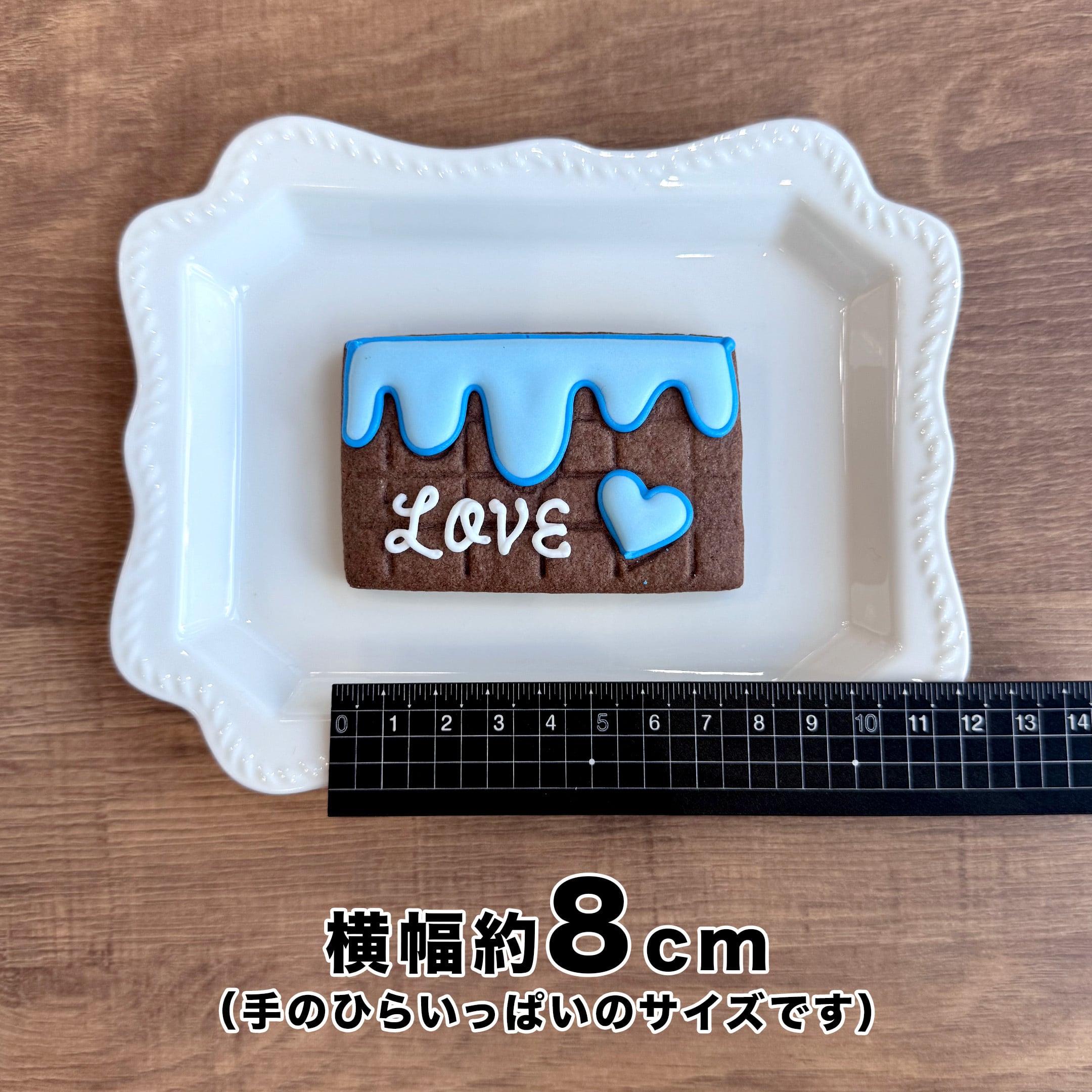 推し様との特別な記念日などにぴったりな、チョコレートモチーフのアイシングクッキーです。キュートな「LOVE」の文字と推し色ハートも、全部手作り! あたたかく優しい表情を楽しんでくださいね。