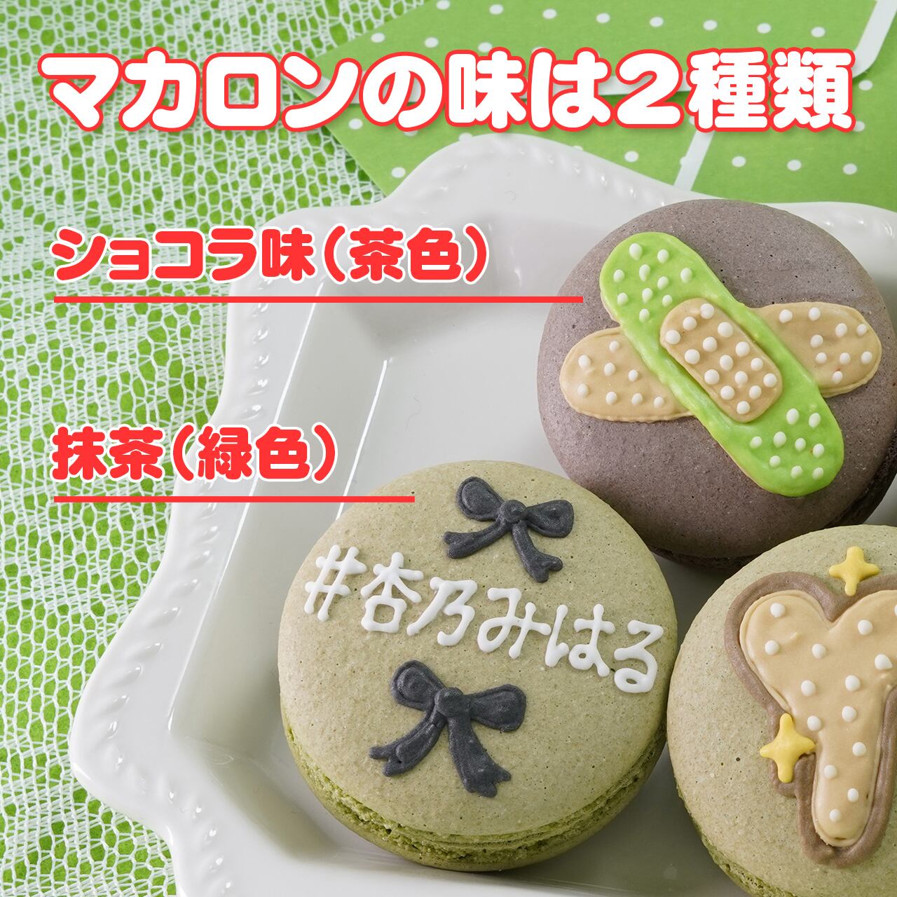 ・マカロンはショコラ味(茶色)、抹茶味(緑色)の2種類です。