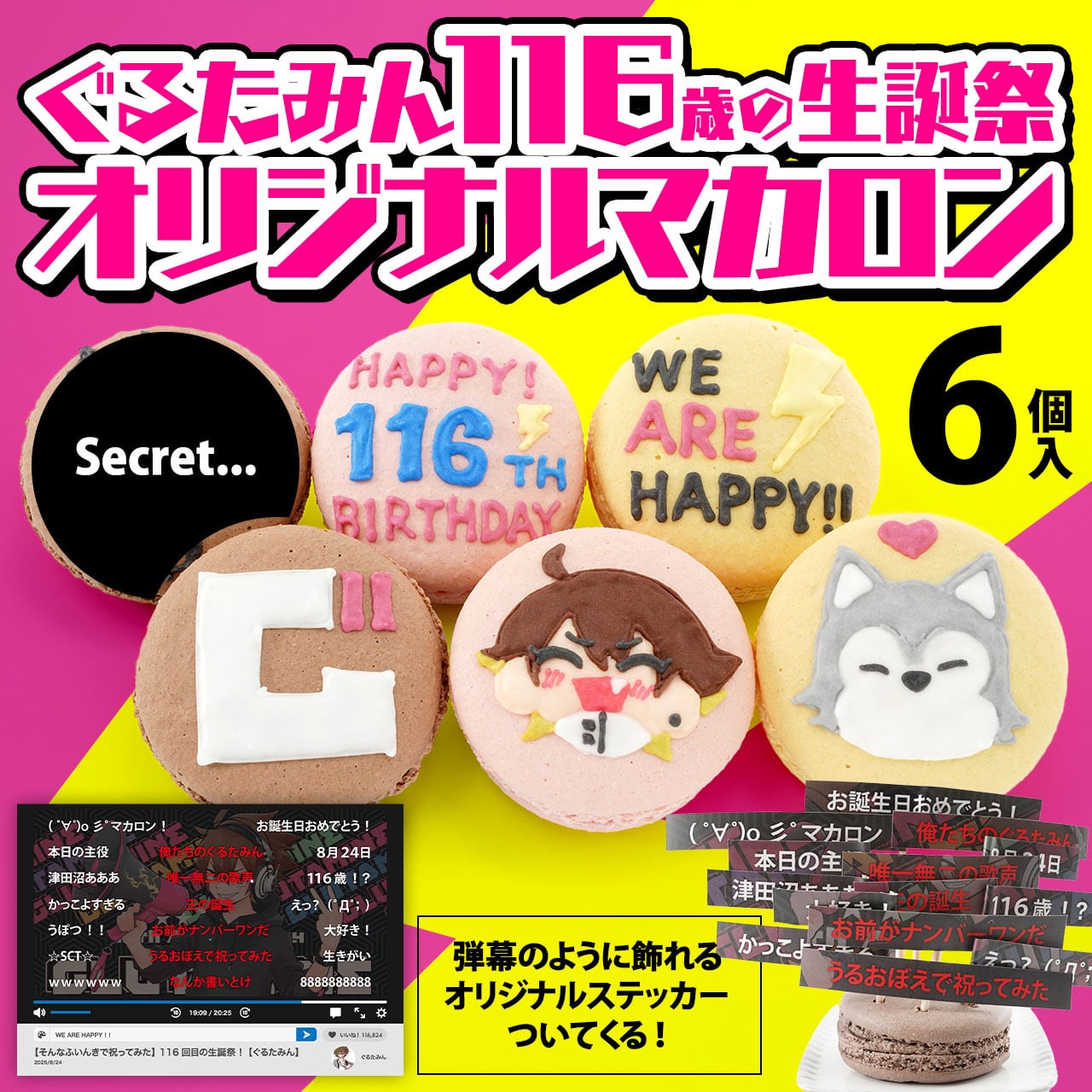 ぐるたみん116歳の生誕お祝いマカロン(6個入り)【弾幕風オリジナルステッカー&バースデーソング付き】