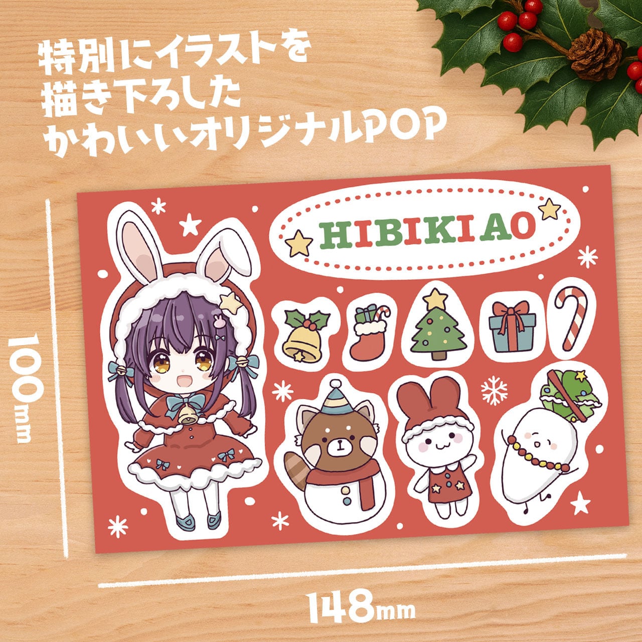 クリスマスケーキを彩る、響木アオのPOP風シールです。