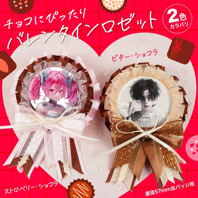 チョコに添えよう! バレンタインロゼット【57mm缶バッジ用】選べる2カラー